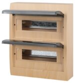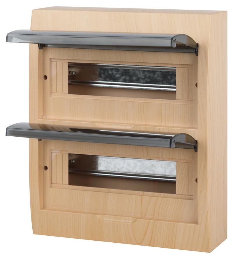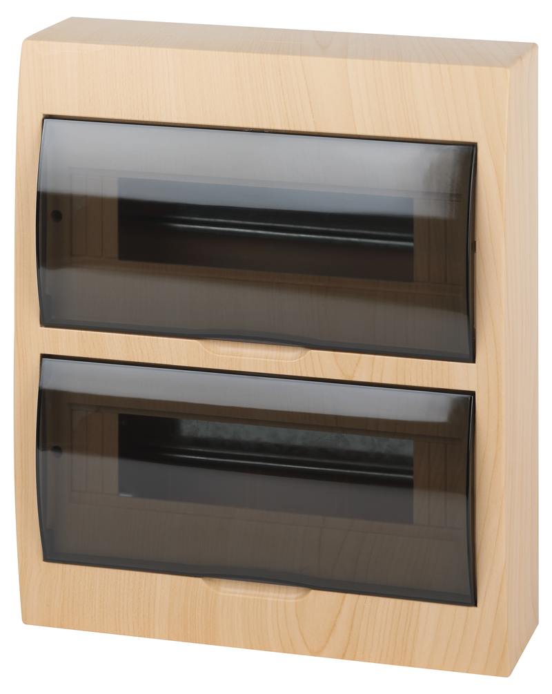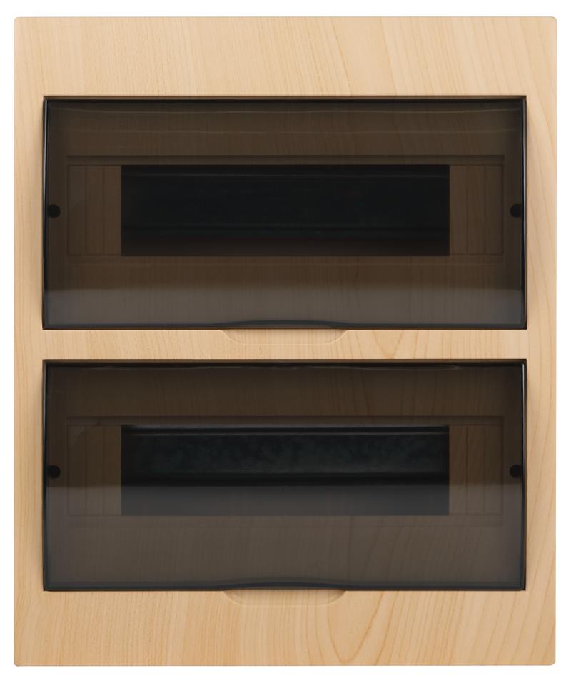 Двухъярусный распределительный навесной щит на 24 модуля ЭРА ЩРН-П-24 BOXF в цвете сосна, с тонированной дверцей. Пластиковый распределительный корпус специальной серии ЭРА ECO VILLAGE — идеальный вариант щитков для загородного жилья и объектов деревянного строительства. Эстетично вписывается в интерьер загородных домов, дач, шале. Защита от влаги и пыли — IP41. Тип установки — навесной. Щит изготовлен из ABS-пластика, устойчивого к воздействию ультрафиолета. Успешно эксплуатируется при температурах от -20 до +40 градусов. Боксы ЭРА ECO VILLAGE устанавливаются внутри жилых помещений, под навесом. В комплект входит набор для монтажа, шина N, шина PE, маркировочная лента.
