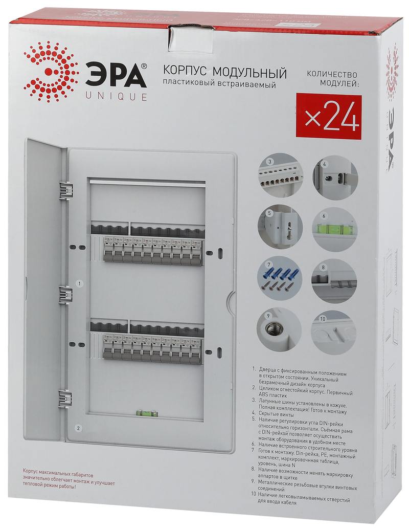 Характеристики Корпус пластиковый ультратонкий ЩРВ-П-24 с белой крышкой ЭРА UNIQUE White_UBOX24 IP41: