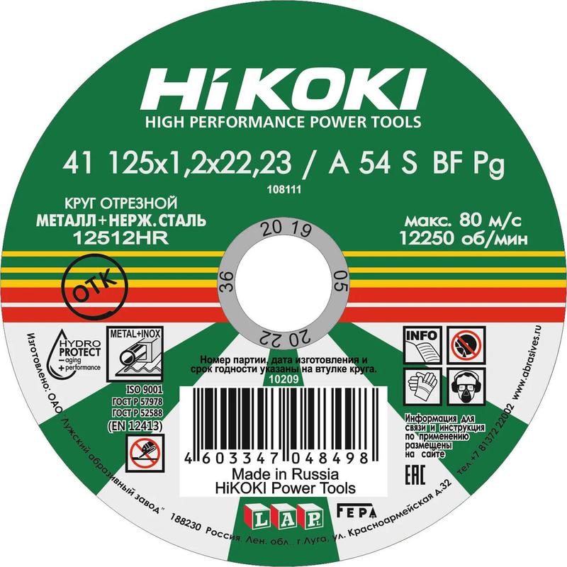 Характеристики Круг отрезной 125х1.2х22мм A54S тип41 HiKOKI RUH12512: