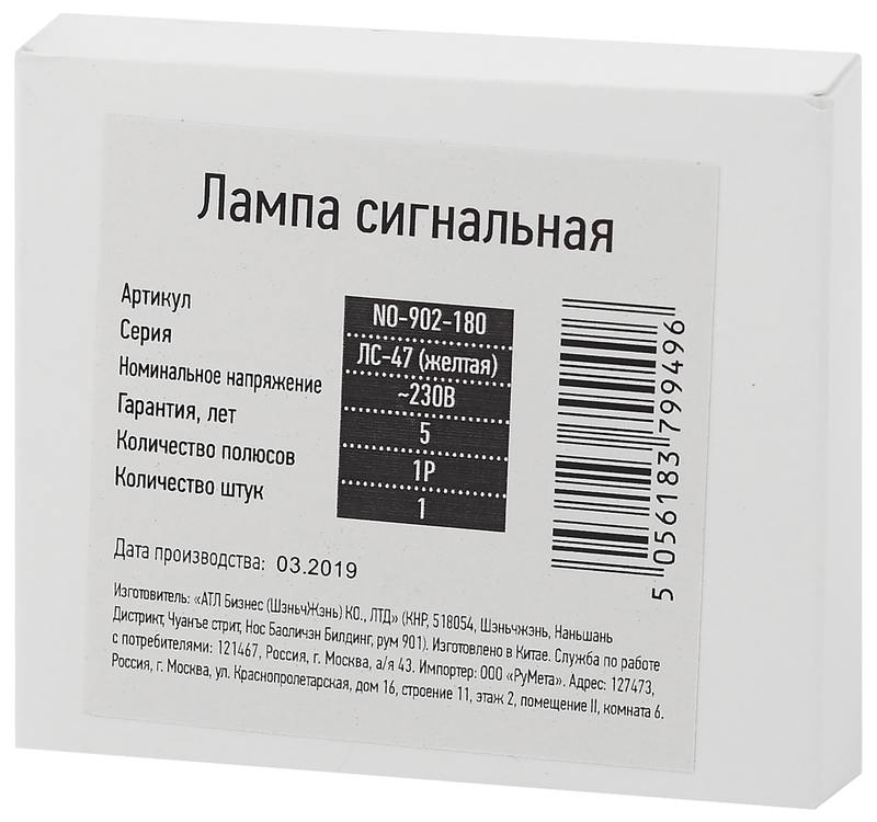 Характеристики Лампа сигнальная ЭРА PRO NO-902-180 ЛС-47 (желтая):