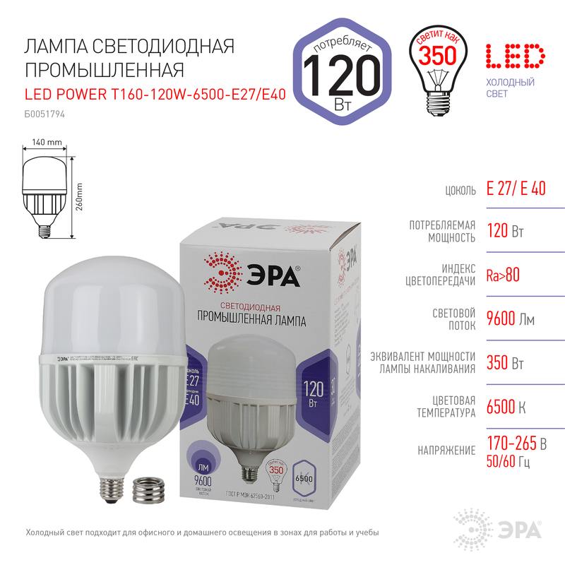 | Модель | LED POWER T160-120W-6500-E27/E40 |