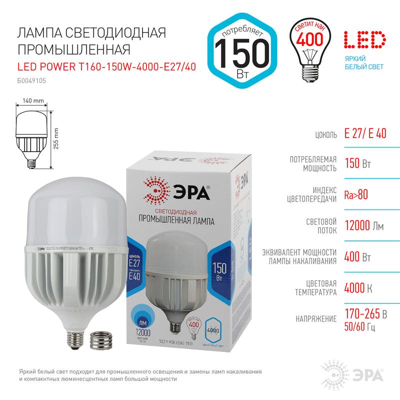 | Модель | LED POWER T160-150W-4000-E27/E40 |