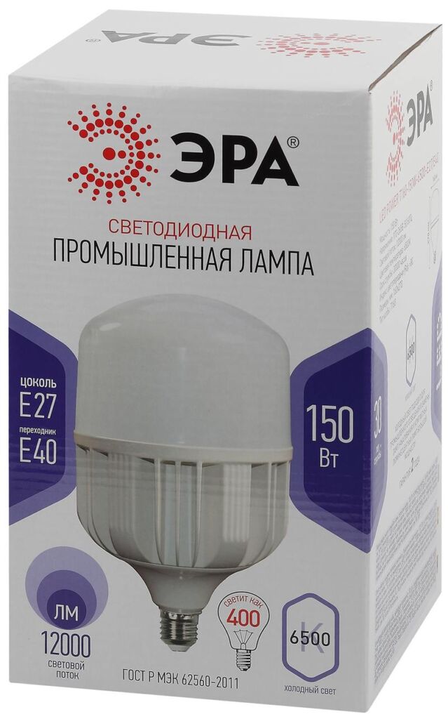 Лампа светодиодная ЭРА Серии Стандарт для освещения производственных, торговых и подсобных помещений. Отличается высокой мощностью, грамотно продуманной системой охлаждения и широким выбором цветовых температур