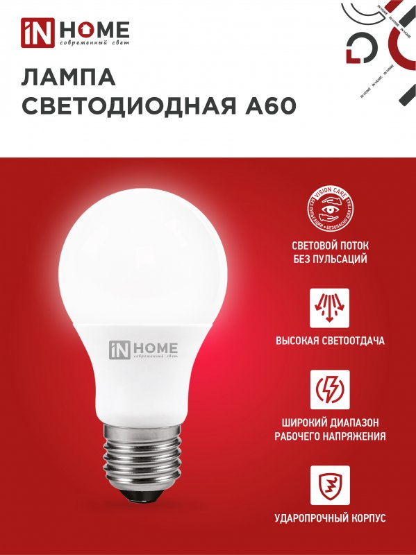 Назначение и применение Лампа светодиодная LED-A60-VC 12Вт 230В Е27 3000К 1140Лм IN HOME