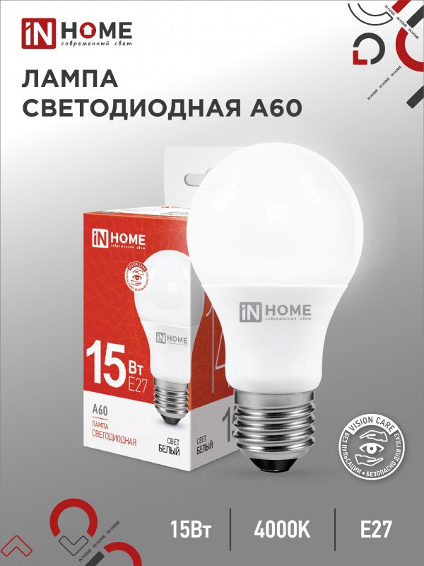 Назначение и применение Лампа светодиодная LED-A60-VC 15Вт 230В Е27 4000К 1430Лм IN HOME