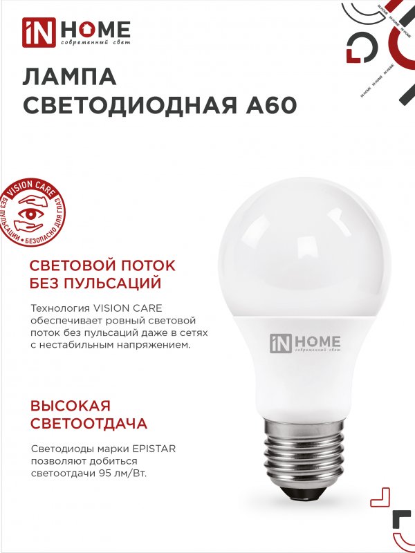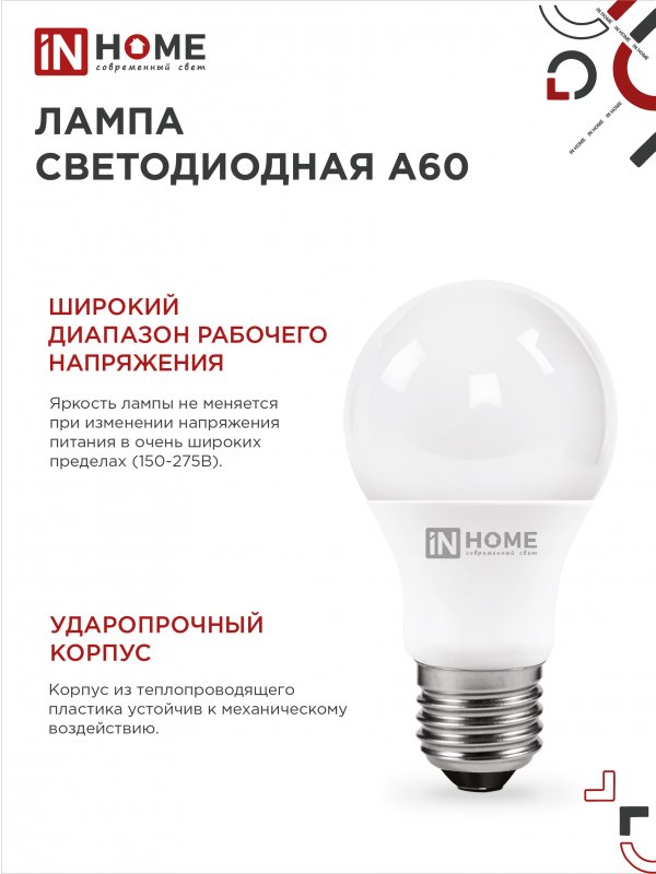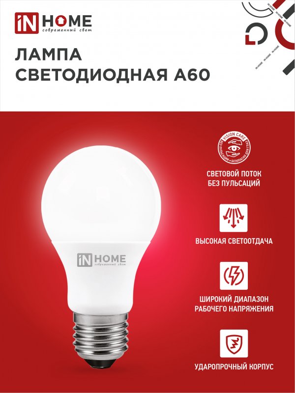 Назначение и применение Лампа светодиодная LED-A60-VC 20Вт 230В Е27 4000К 1900Лм IN HOME