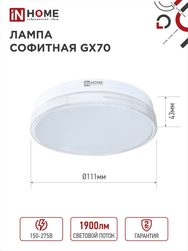 Характеристики Лампа светодиодная LED-GX70-VC 20Вт 230В 4000К 1900Лм IN HOME: