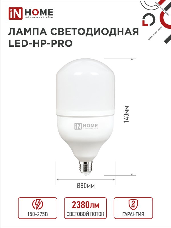 Назначение и применение Лампа светодиодная LED-HP-PRO 25Вт 230В E27 4000К 2380Лм IN HOME