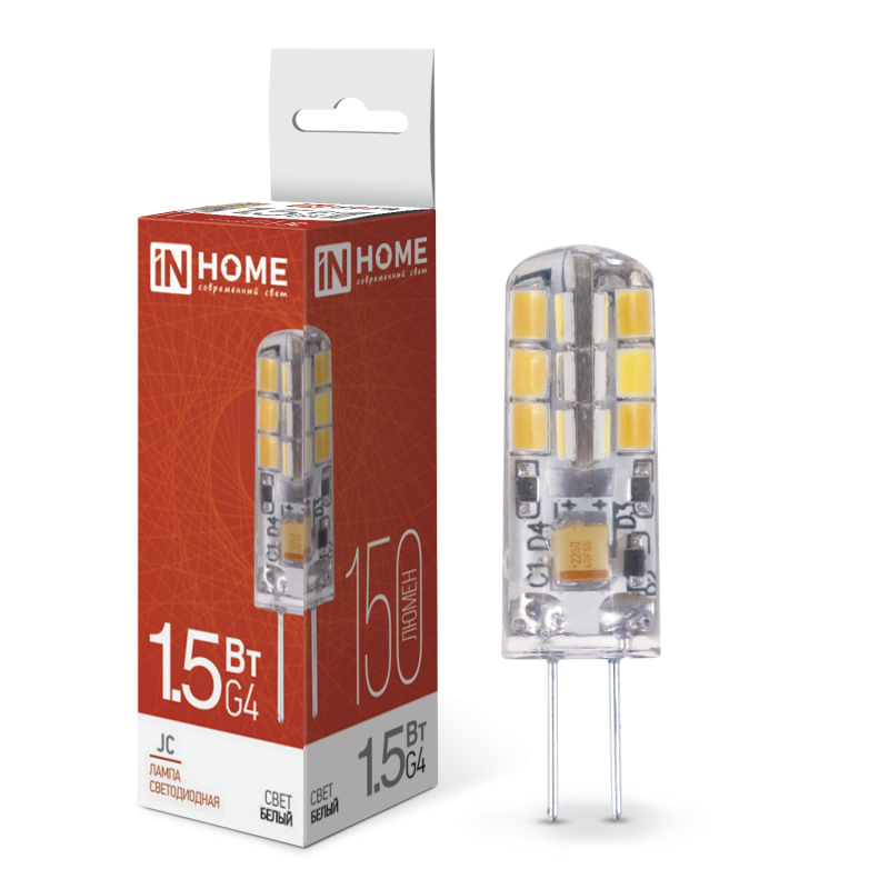 Характеристики Лампа светодиодная LED-JC 1.5Вт 12В G4 4000К 150Лм IN HOME: