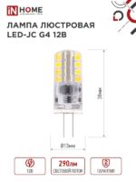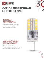 Характеристики Лампа светодиодная LED-JC 3Вт 12В G4 6500К 290Лм IN HOME: