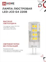 Характеристики Лампа светодиодная LED-JCD 230В 8Вт G4 6500К 760Лм IN HOME: