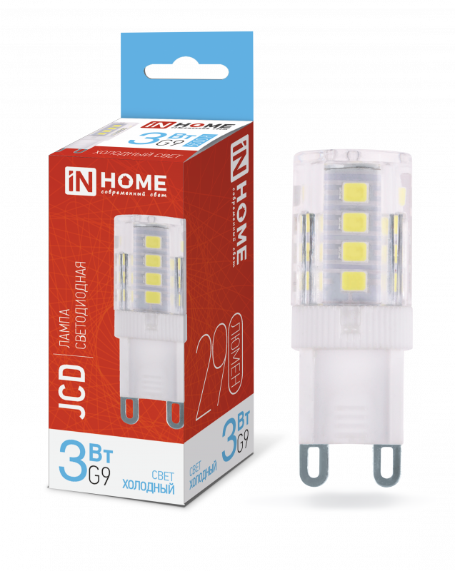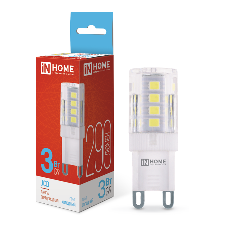 Характеристики Лампа светодиодная LED-JCD 3Вт G9 6500К 290Лм IN HOME: