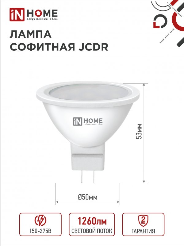 Назначение и применение Лампа светодиодная LED-JCDR-VC 14Вт 230В GU5.3 4000K 1260Лм IN HOME