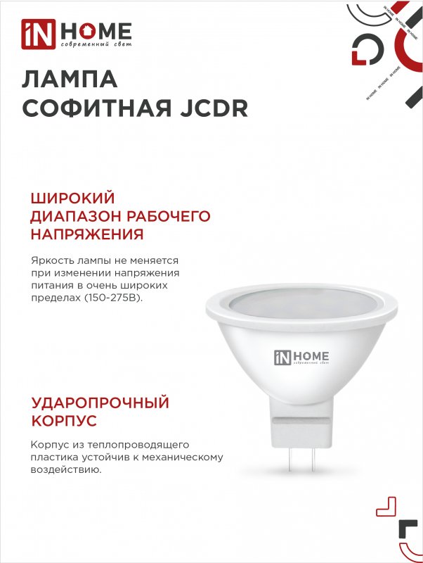 Назначение и применение Лампа светодиодная LED-JCDR-VC 8Вт 230В GU5.3 4000К 720Лм IN HOME