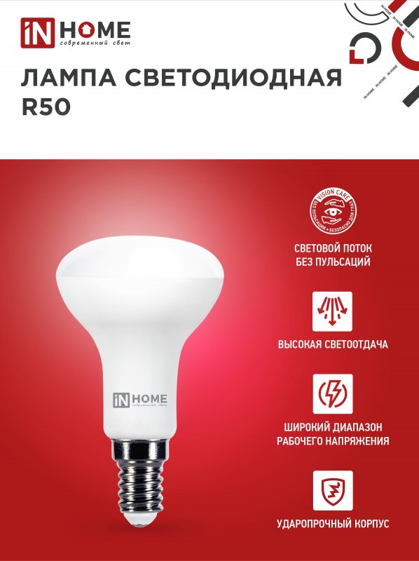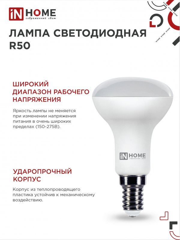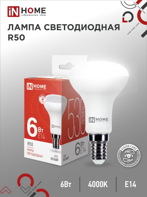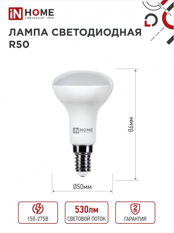 Назначение и применение Лампа светодиодная LED-R50-VC 6Вт 230В Е14 4000К 530Лм IN HOME