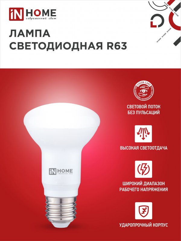 Назначение и применение Лампа светодиодная LED-R63-VC 9Вт 230В Е27 3000К 810Лм IN HOME
