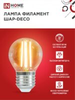 Характеристики Лампа светодиодная LED-ШАР-deco 7Вт 230В Е27 3000К 810Лм прозрачная IN HOME:
