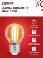 Характеристики Лампа светодиодная LED-ШАР-deco 9Вт 230В Е27 6500К 1040Лм прозрачная IN HOME: