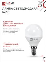 Характеристики Лампа светодиодная LED-ШАР-VC 4PACK 11Вт 230В Е14 4000К 1050Лм (4шт./упак) IN HOME: