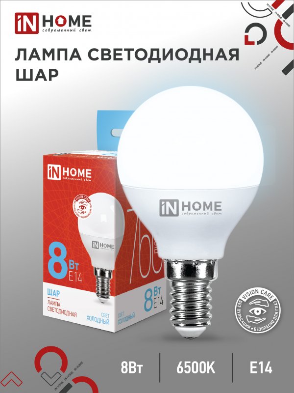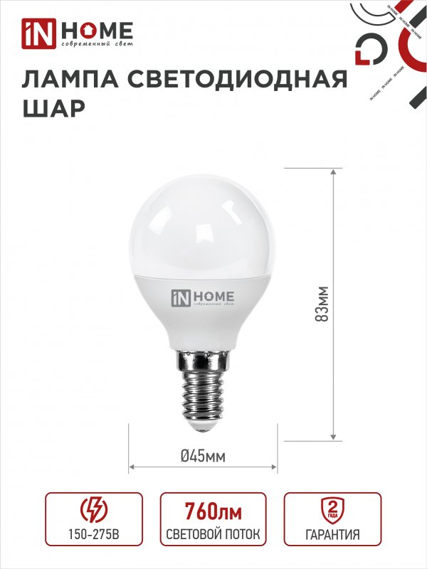 Назначение и применение Лампа светодиодная LED-ШАР-VC 8Вт 230В Е14 6500К 760Лм IN HOME