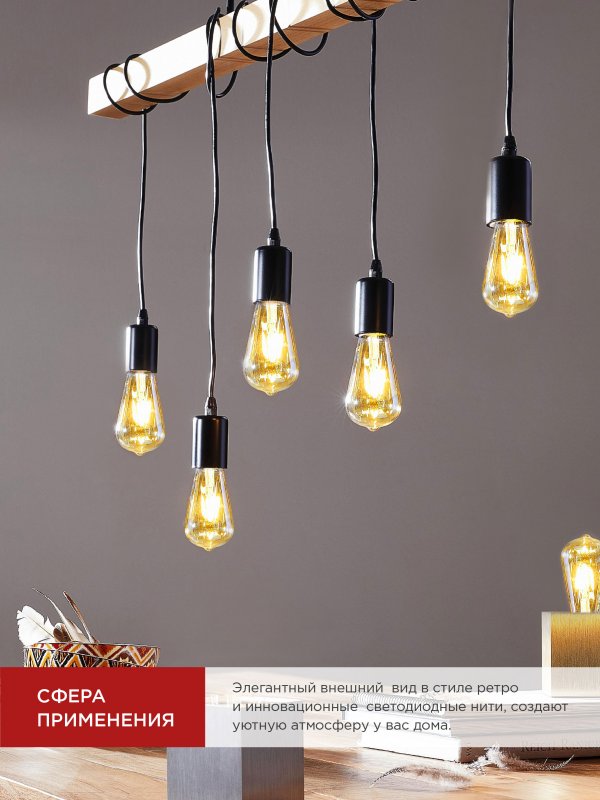 Светодиодная лампа филамент в ретро-корпусе LED-ST64-DECO не только обеспечит широкий угол освещения и экономичное энергопотребление, но и станет ярким элементом дизайна жилого помещения или общественного пространства