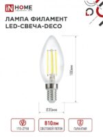 Характеристики Лампа светодиодная LED-СВЕЧА-deco 7Вт 230В Е14 3000К 810Лм прозрачная IN HOME: