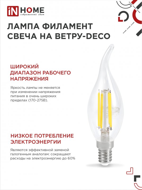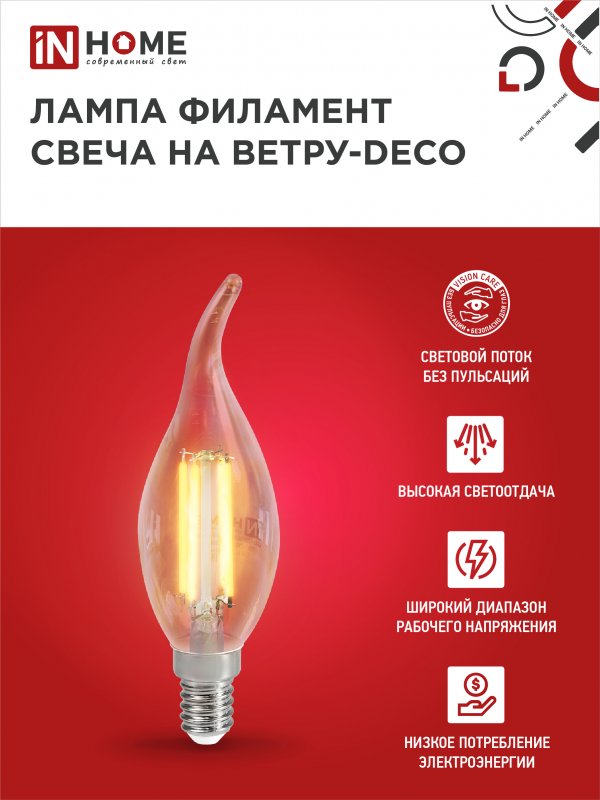 Cветодиодные лампы филамент LED-СВЕЧА НА ВЕТРУ-deco позволяют сочетать классический стеклянный корпус и широкий угол освещения с экономичным энергопотреблением и широким выбором цветовых температур