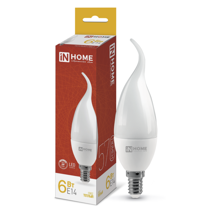 Характеристики Лампа светодиодная LED-СВЕЧА НА ВЕТРУ-VC 6Вт 230В Е14 3000К 570Лм IN HOME: