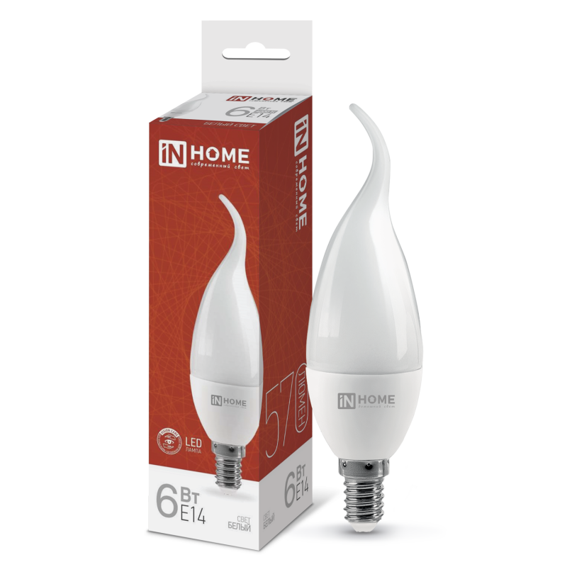 Характеристики Лампа светодиодная LED-СВЕЧА НА ВЕТРУ-VC 6Вт 230В Е14 4000К 570Лм IN HOME: