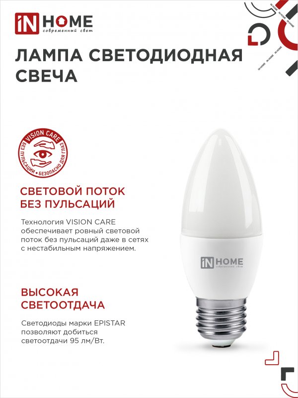 Назначение и применение Лампа светодиодная LED-СВЕЧА-VC 11Вт 230В Е27 4000К 1050Лм IN HOME
