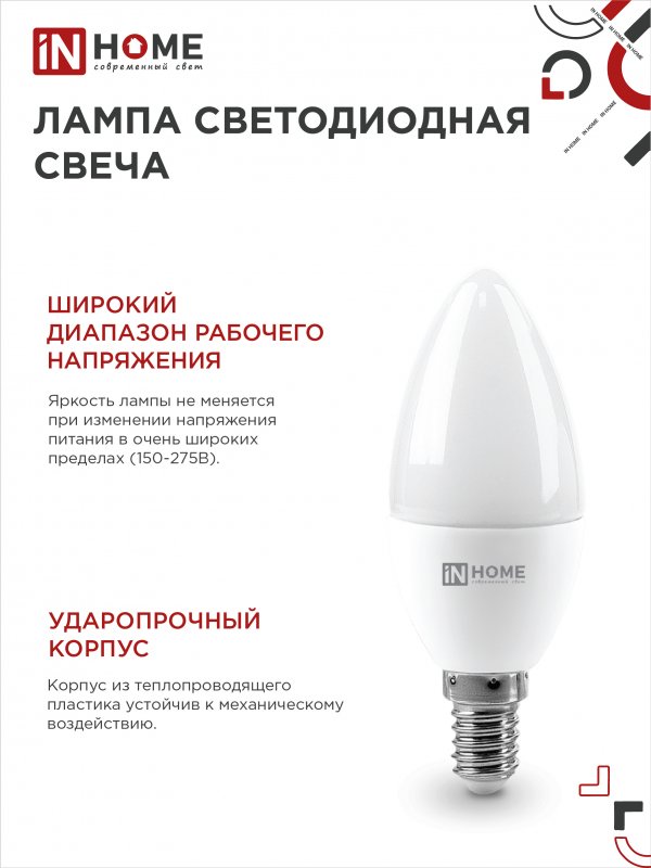 Назначение и применение Лампа светодиодная LED-СВЕЧА-VC 6Вт 230В Е14 4000К 570Лм IN HOME