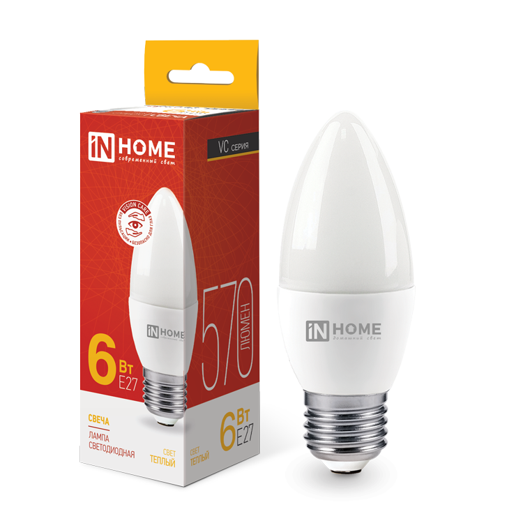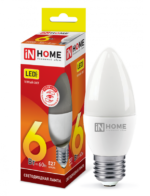Характеристики Лампа светодиодная LED-СВЕЧА-VC 6Вт 230В Е27 3000К 570Лм IN HOME: