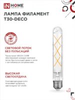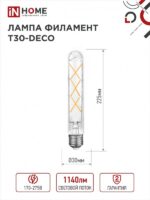 Характеристики Лампа светодиодная LED-T30-deco 9Вт 230В Е27 4000К 1140Лм 225мм прозрачная IN HOME: