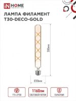 Характеристики Лампа светодиодная LED-T30-deco gold 11Вт 230В Е27 3000К 1160Лм 300мм золотистая IN HOME: