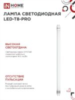Назначение и применение Лампа светодиодная LED-T8-М-PRO 10Вт 230В G13 6500К 1000Лм 600мм матовая неповоротная IN HOME