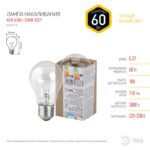 Характеристики Лампочка ЭРА A50 60Вт Е27 / E27 230В груша прозрачная в гофре:
