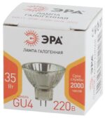 Характеристики Лампочка галогенная ЭРА GU4-MR11-35W-220V-30 CL GU4 35Вт софит теплый белый свет: