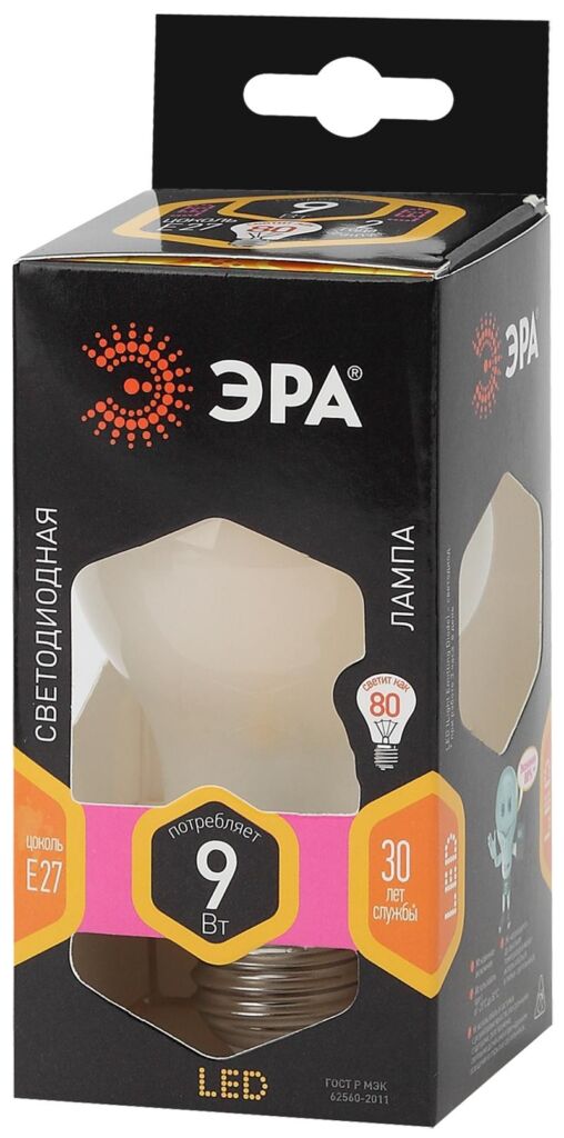 Характеристики Лампочка светодиодная ЭРА F-LED A60-9W-827-E27 frost Е27 / E27 9Вт филамент груша матовая теплый белый свет: