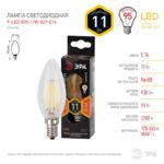 Характеристики Лампочка светодиодная ЭРА F-LED B35-11W-827-E14 Е14 / Е14 11Вт филамент свеча теплый белый свет: