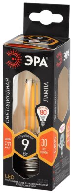 Характеристики Лампочка светодиодная ЭРА F-LED B35-9w-827-E2 Е27 / Е27 9Вт филамент свеча теплый белый свет: