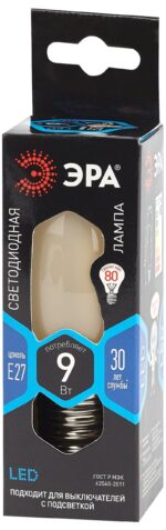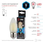 Характеристики Лампочка светодиодная ЭРА F-LED B35-9w-840-E27 frost Е27 / Е27 9Вт филамент свеча матовая нейтральный белый свет: