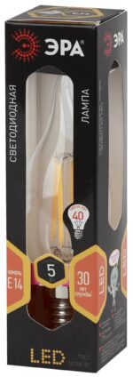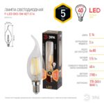 Характеристики Лампочка светодиодная ЭРА F-LED BXS-5W-827-E14 Е14 / Е14 5Вт филамент свеча на ветру теплый белый свет: