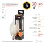Характеристики Лампочка светодиодная ЭРА F-LED BXS-5W-827-E14 frost Е14 / Е14 5Вт филамент свеча на ветру матовая теплый свет: