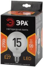 Характеристики Лампочка светодиодная ЭРА F-LED G125-15w-827-E27 OPAL E27 / Е27 15Вт филамент шар матовый теплый белый свет: