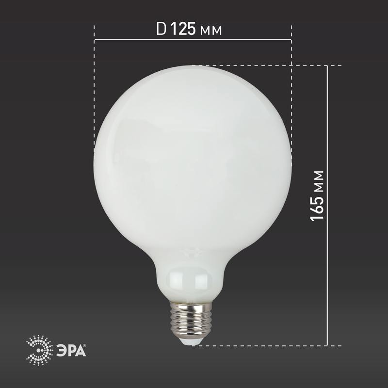 Характеристики Лампочка светодиодная ЭРА F-LED G125-15w-827-E27 OPAL E27 / Е27 15Вт филамент шар матовый теплый белый свет: