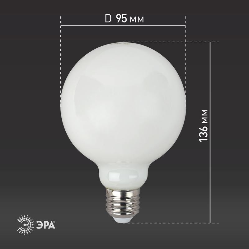 Характеристики Лампочка светодиодная ЭРА F-LED G95-12w-827-E27 OPAL E27 / Е27 12Вт филамент шар матовый теплый белый свет: