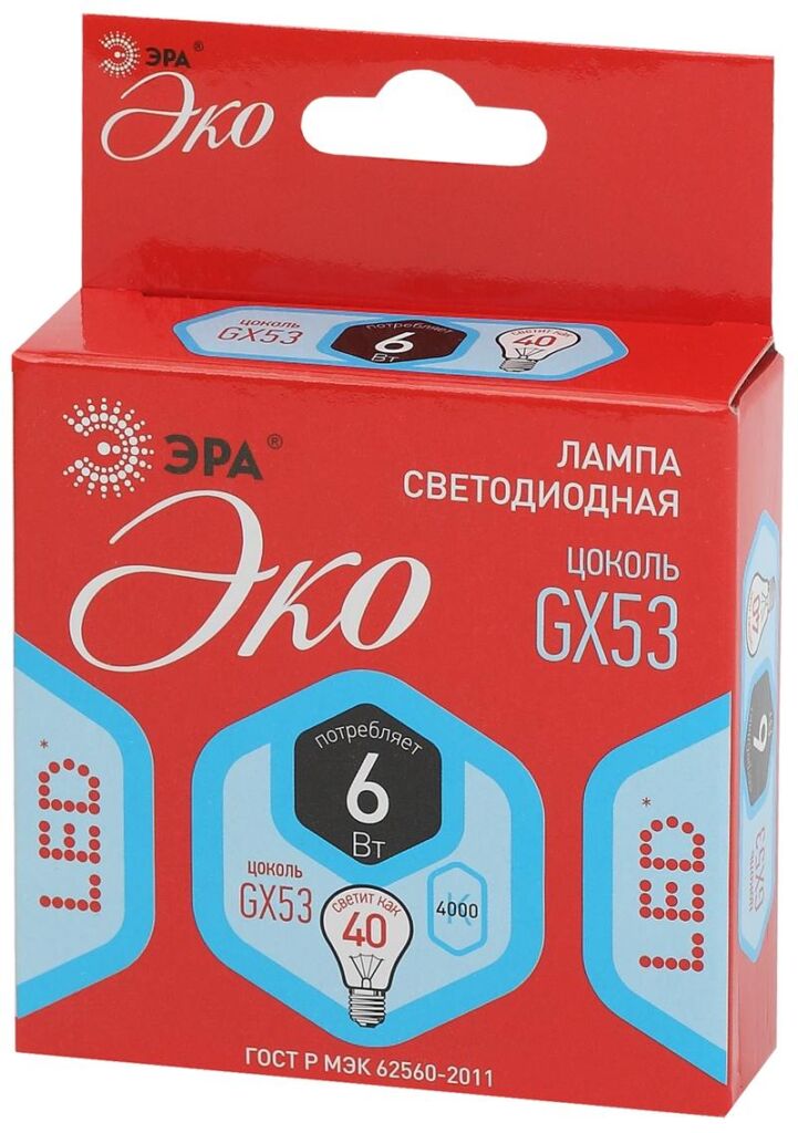 Характеристики Лампочка светодиодная ЭРА RED LINE ECO LED GX-6W-840-GX53 GX53 6Вт таблетка нейтральный белый свет: