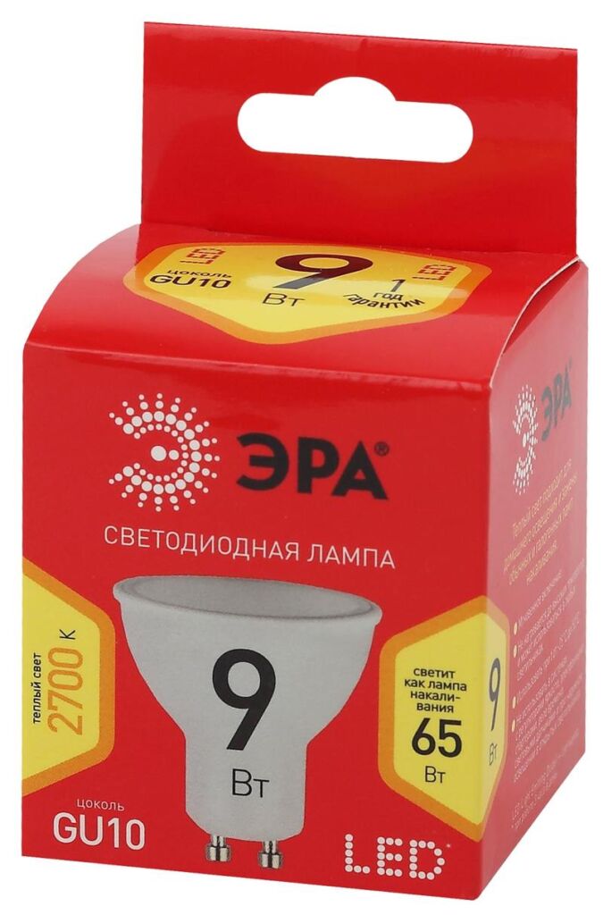 Характеристики Лампочка светодиодная ЭРА RED LINE ECO LED MR16-9W-827-GU10 GU10 9Вт софит теплый белый свет: