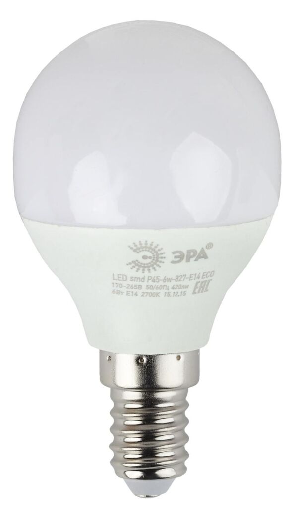 Характеристики Лампочка светодиодная ЭРА RED LINE ECO LED P45-6W-840-E14 E14 / Е14 6Вт шар нейтральный белый свет: