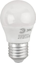 Бытовая светодиодная лампа ЭРА Серии Бюджет, создаёт яркое ровное освещение и экономит до 90% электроэнергии по сравнению с лампой накаливания с аналогичным световым потоком. Светит теплым светом с жёлтым оттенком — такая цветовая температура эффективна для отдыха и уютной атмосферы в доме. Используется в потолочных, настенных, настольных светильниках, в люстрах и бра. Мгновенно включается и не нагревается.